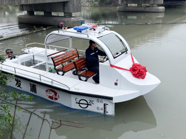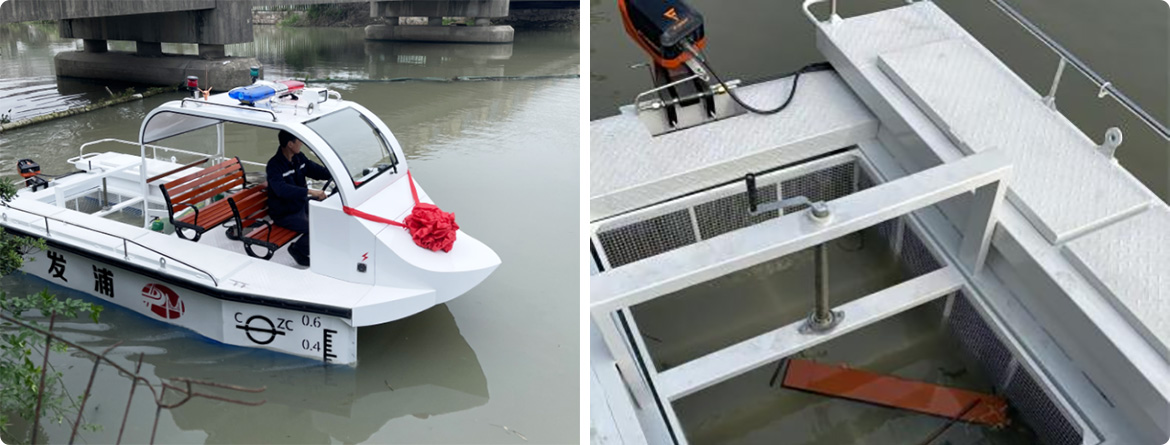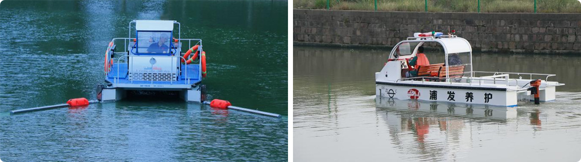 It is a new-type riverway cleaning vessel integrating multiple functions, mainly designed for water patrol, surveillance, floating debris collection, storage & transportation, water surface sanitation, and guardrail maintenance in inland river basins, lake surfaces, parks, scenic spots and other water areas.