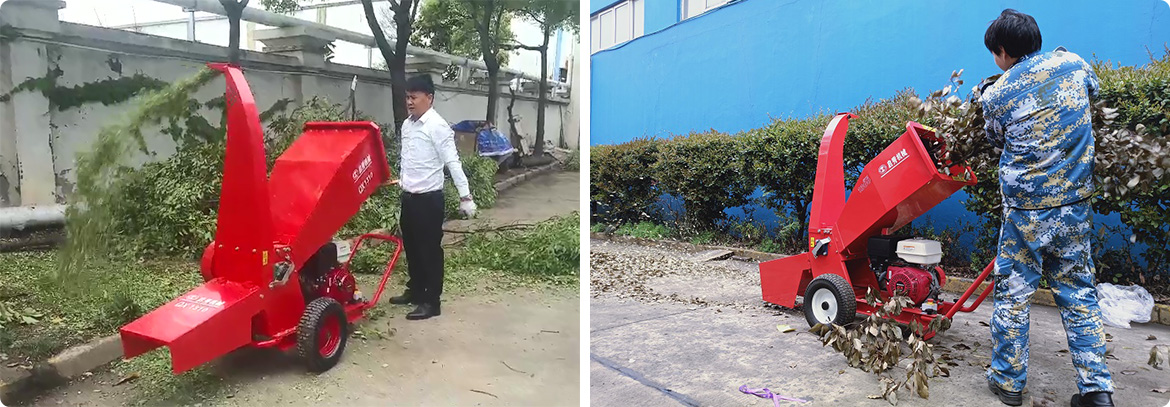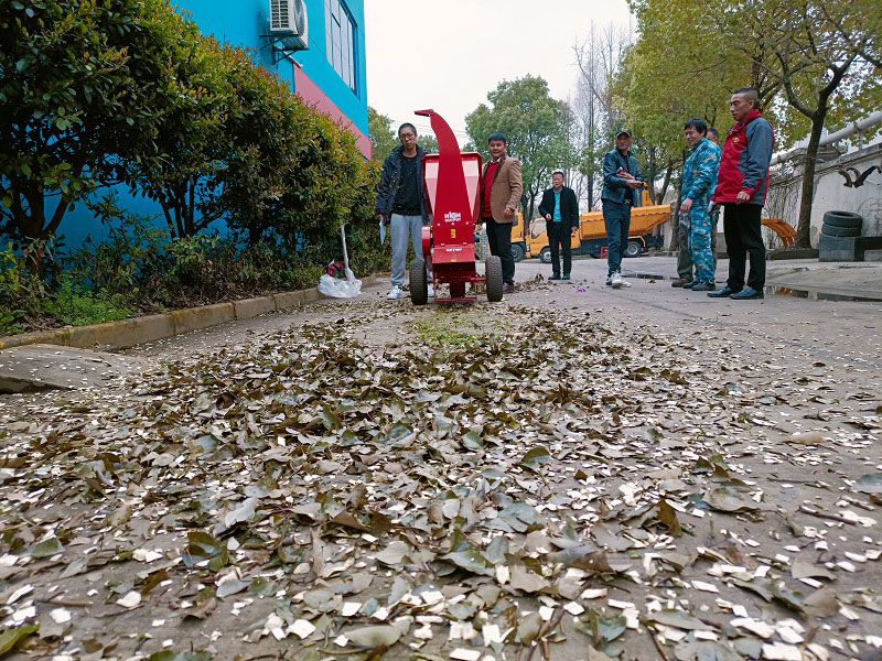 This machine is mainly composed of chassis, shredding unit, power unit (diesel or gasoline engine), base, drive belt and discharge barrel. The shredding unit is fully welded with steel plates, featuring a unique 8-blade double-edged dual-cutter disc structure, which ensures stable operation with low vibration. It is equipped with two groups of adjustable large bottom blades, consisting of one adjustable lower blade and two adjustable side blades. The hammer blades are specially designed and treated with premium materials, delivering high impact-shredding efficiency and a long service life. The machine features low power consumption and is capable of shredding thicker branches and twigs.