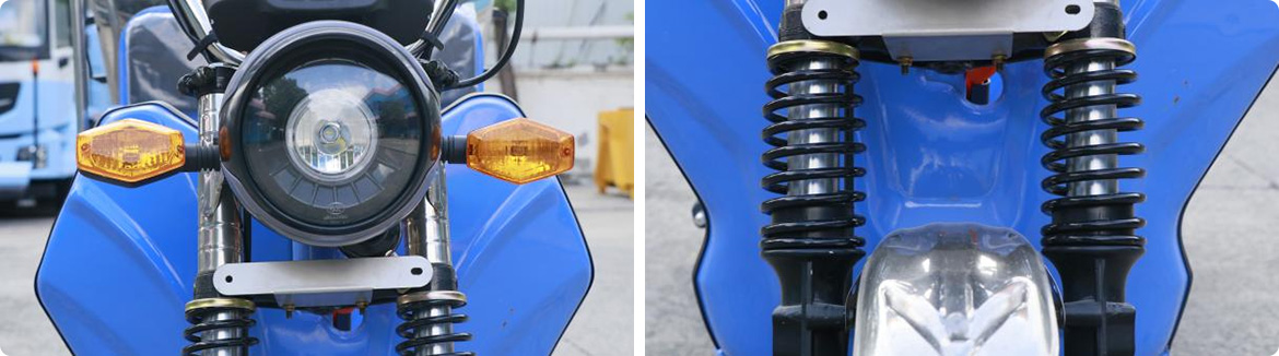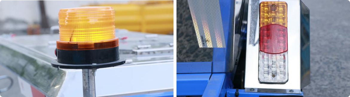 Lamps & Lights: Front headlights and rear taillights are LED lighting fixtures featuring low energy consumption and environmental protection; also equipped with left and right turn signals, brake lights, running lights, instrument lights, electric horn, work warning lights, etc.