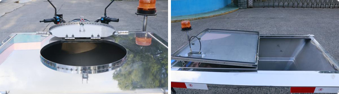 Waste Bin Design: The waste bin of a stainless steel sanitation cart typically adopts a front-and-rear flip cover design, which effectively prevents floating debris from spilling out.