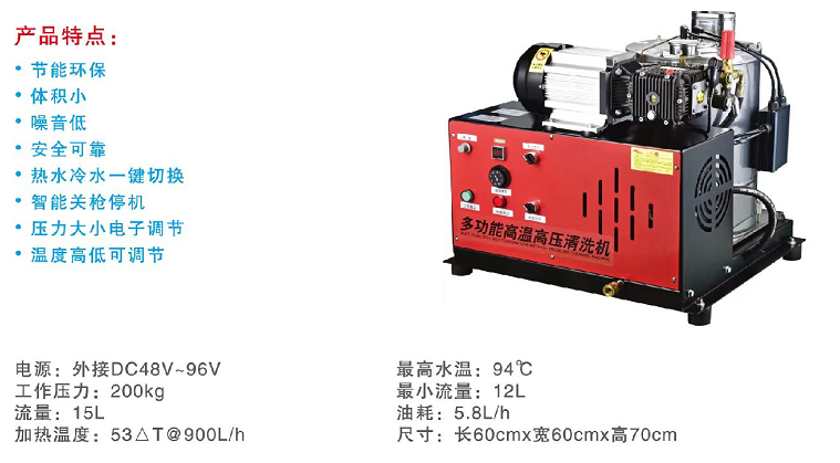 Flushing Battery: 60V/150A lithium battery (optional, including charger)