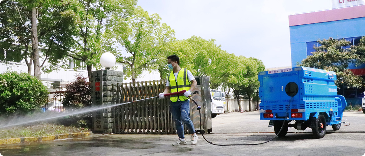 2. Equipped with a large-capacity flushing water tank, two counter-flushing and single-flushing high-temperature & high-pressure nozzles for ground cleaning are installed behind the front wheels. A long-handled high-temperature & high-pressure flushing gun is fitted in the rear box, and a row of sprinkling and high-temperature & high-pressure flushing devices is arranged behind the front wheels, effectively reducing operation time.