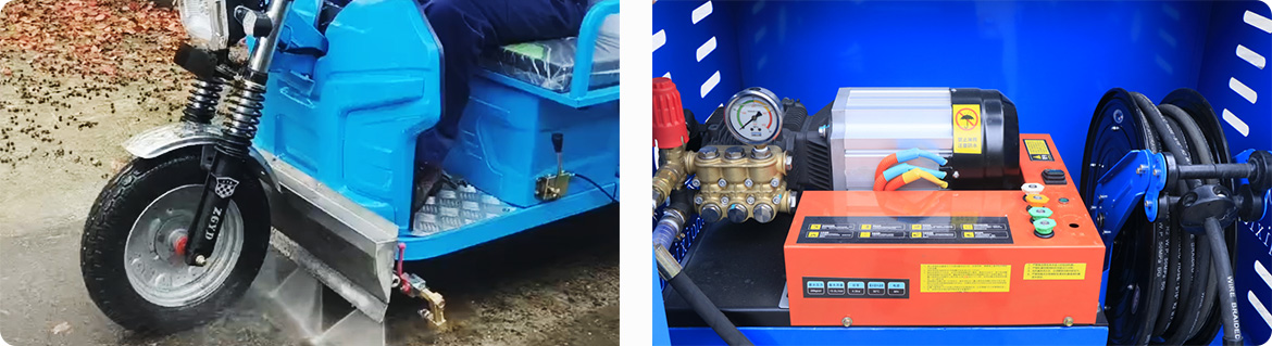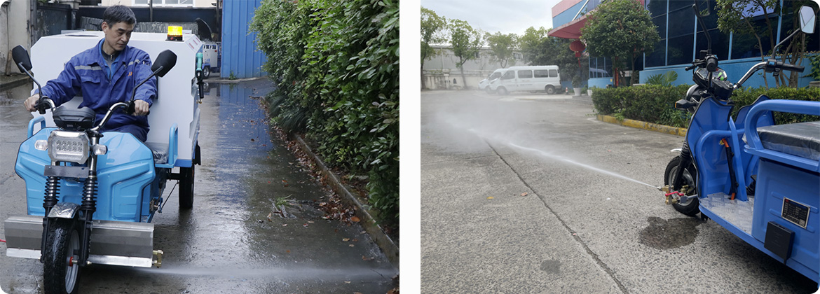 5. The vehicle offers 10 flushing modes, including ditch bottom flushing, right-side flushing, left-side flushing, opposing flushing, handheld flushing, and curb flushing, etc.