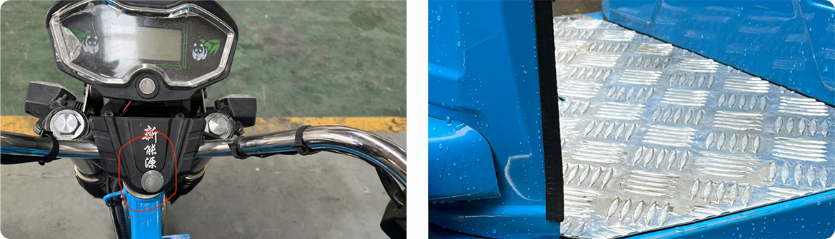 4. Two sets of braking systems are configured: front disc brakes and rear drum parking brakes, which can brake both rear wheels simultaneously, ensuring safe driving and operation on the road.